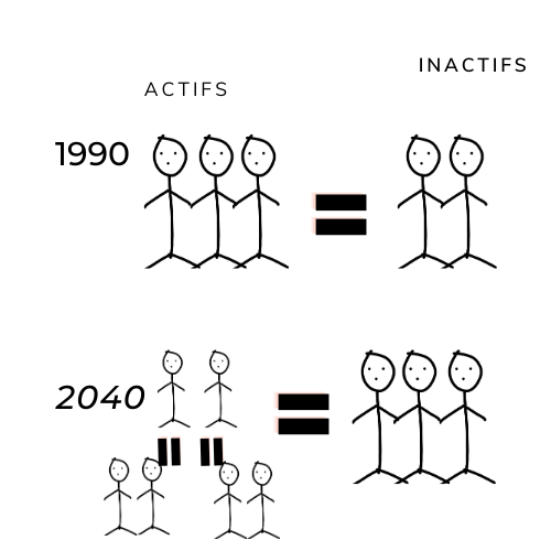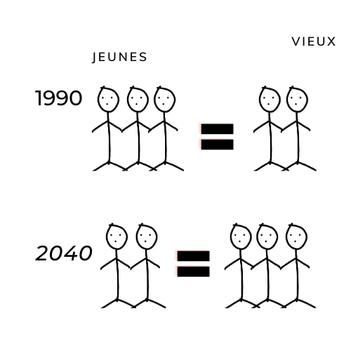 Puisque la pyramide des âges s'inverse, qu'il y a plus de "vieux" et moins de "jeunes", forcément, on ne sait plus financer les pensions.